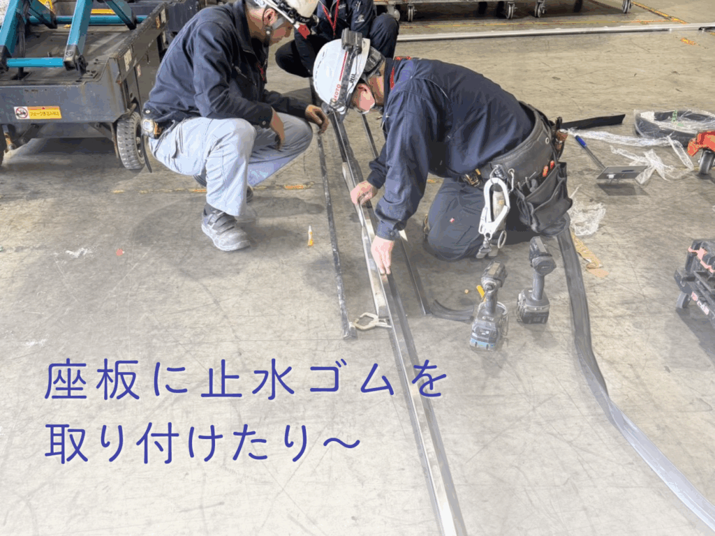 座板に止水ゴムを取り付ける工事1カ所